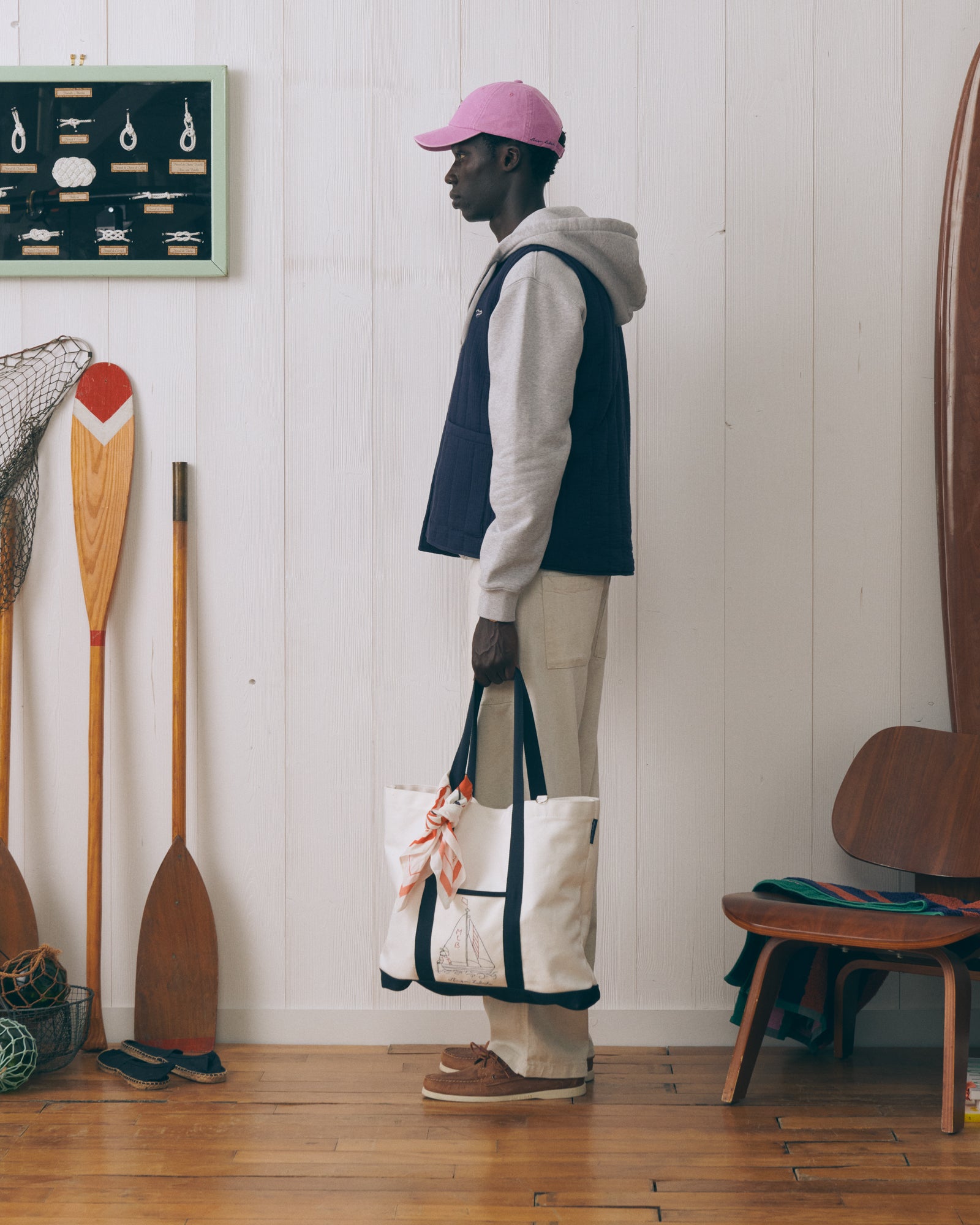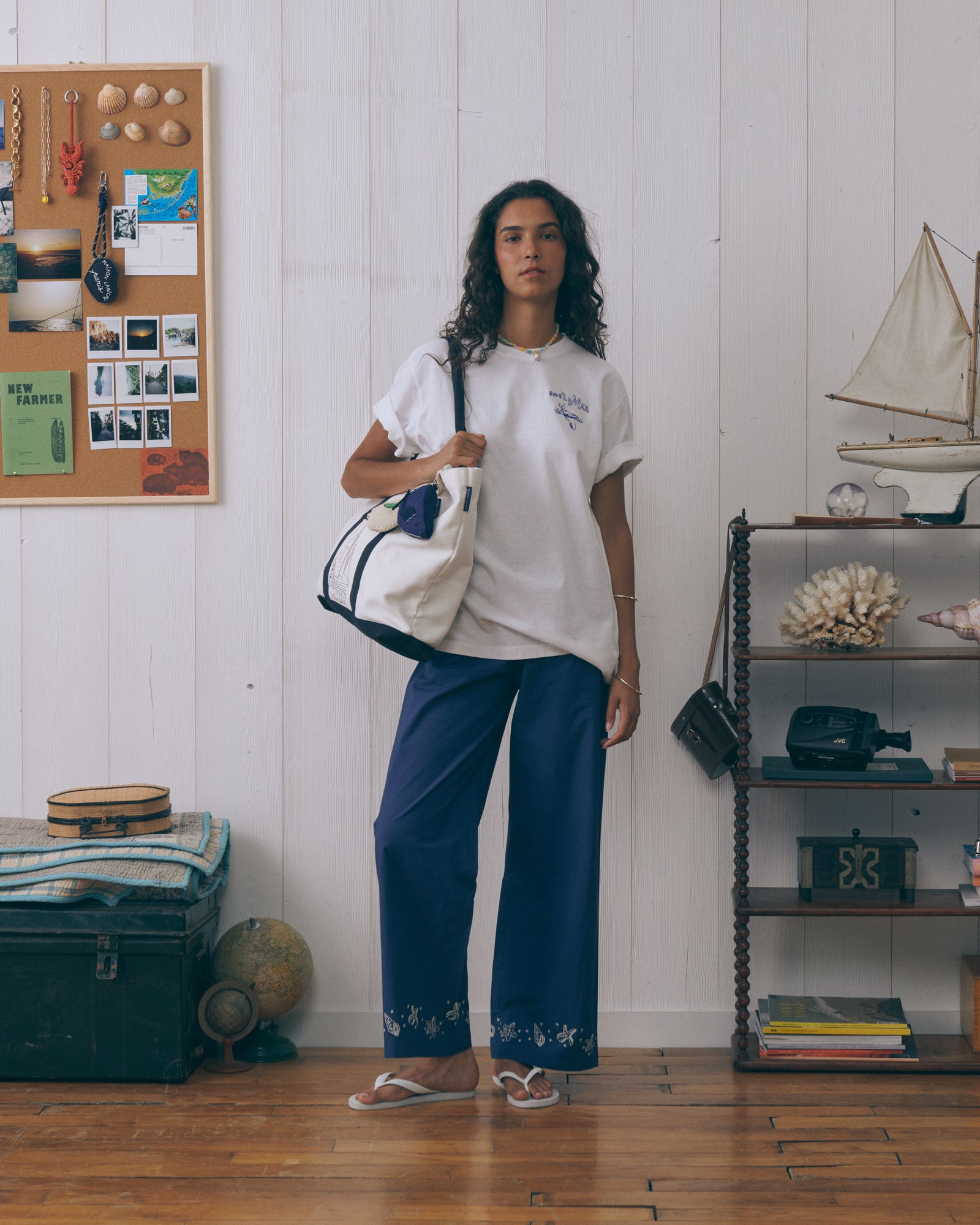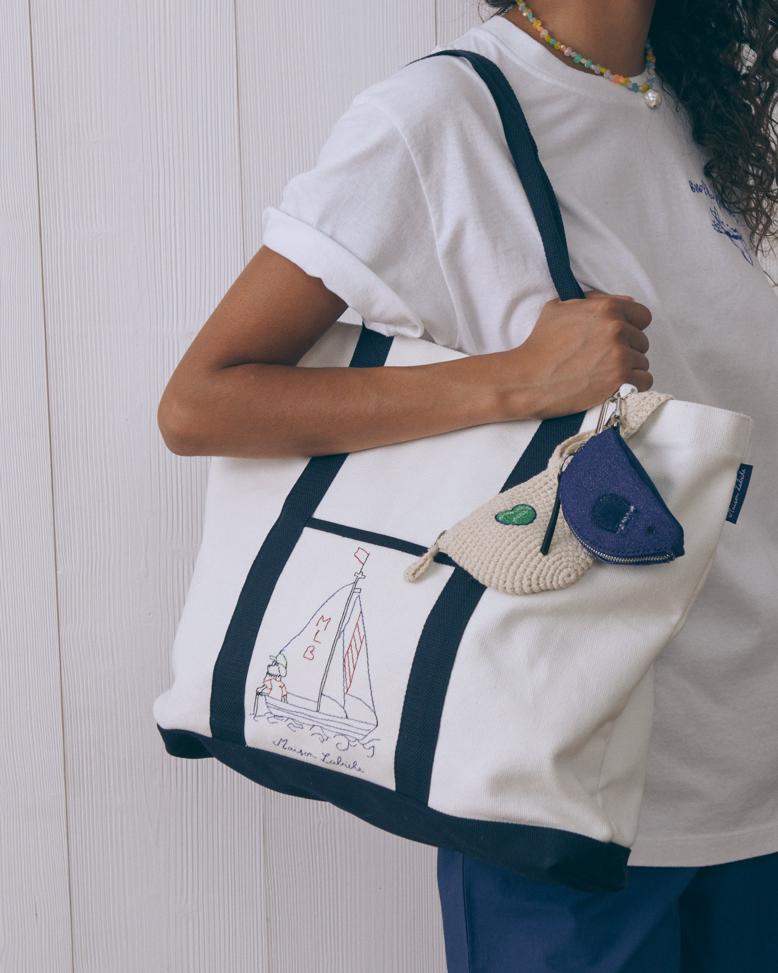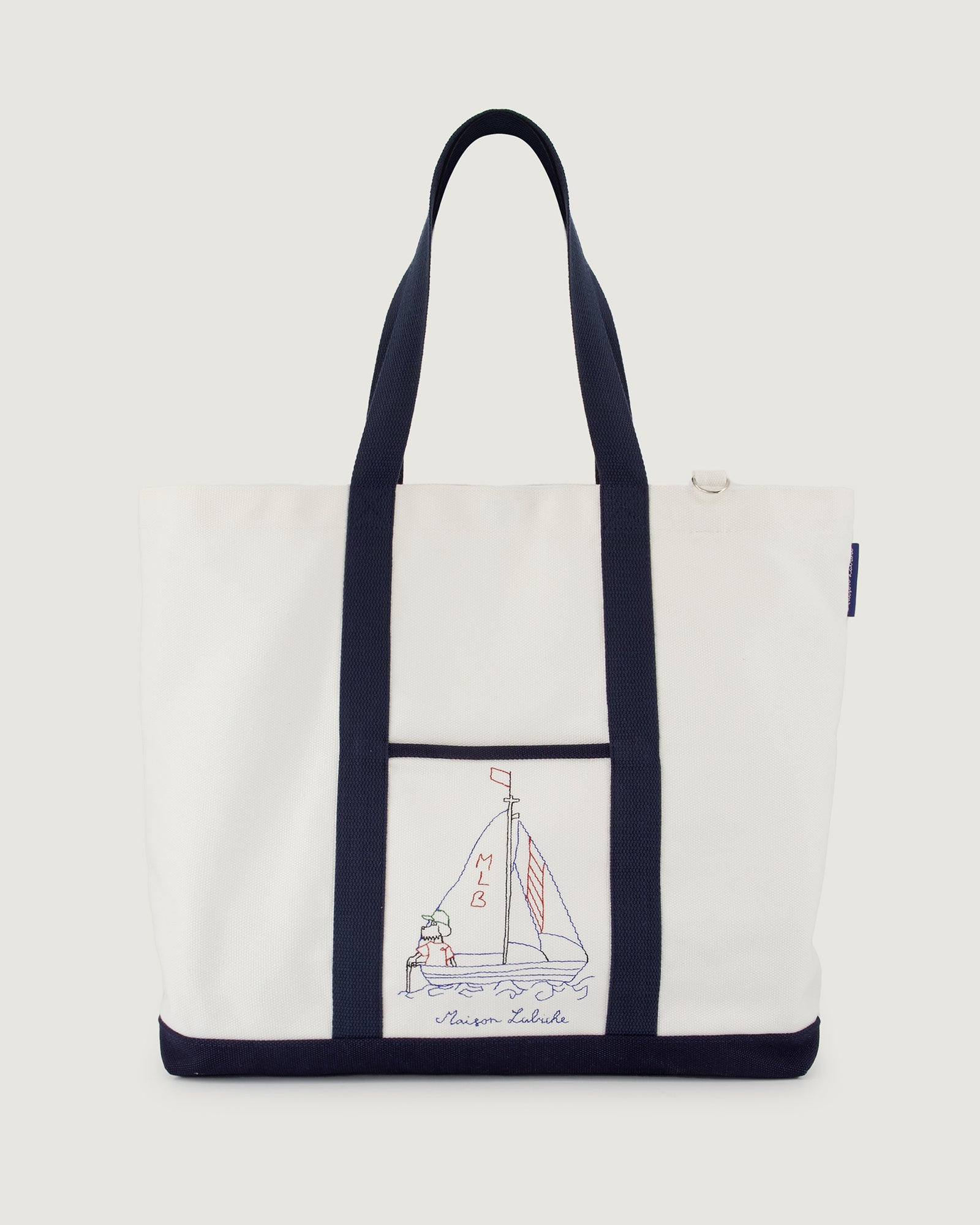 Bolsa de forma clásica con asas en diseño bicolor con bordado. El bordado está dedicado a los amantes de la navegación. Confeccionada en algodón 100% con diseño que combina funcionalidad, gráfica náutica y versatilidad para uso diario.